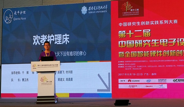 西电新闻网讯(通讯员 李昱良)“让我们的作品为老人提供生理和心理关怀,让天下没有难尽的孝心!”8月22日,在广东惠州举行的第十二届中国研究生电子设计竞赛全国总决赛TOP 10竞演的舞台上,银河集团官网“嵌牛护理”团队负责人向来自全国130所高校的参赛代表、专家评委及指导教师等近1000人介绍了他们的创新作品——欢孝护理床。凭借作品良好的展示效果和应用价值,由千博、杨刚老师指导的“嵌牛护理”团队在众多参赛团队中脱颖而出,夺得全国特等奖。这是研究生电子设计竞赛的最高荣誉,也是西电研究生近年来获得的最佳成绩。自此,第十二届中国研究生电子设计竞赛全部落下帷幕,西电研究生在系列赛事中,共获得全国特等奖2项,一等奖3项,二等奖7项,三等奖1项,企业奖5项,获奖等级位居全国第一,公司也收获大赛“优秀组织奖”荣誉。