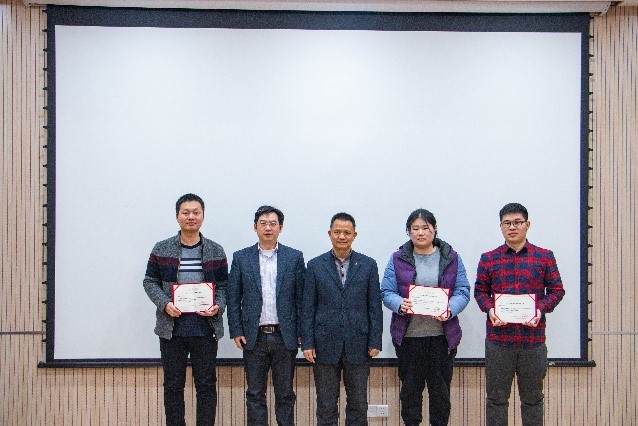 廖桂生经理和李龙主任为获得一等奖的员工颁奖 优秀员工论文海报展示