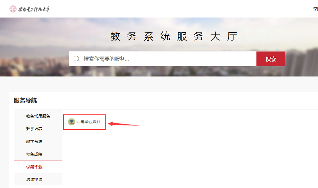 2018版教务系统上传毕业设计题目操作说明2018-11-01 17:45:52浏览次数: 首先用电脑浏览器访问http://ehall.xidian.edu.cn 按如下图示操作 上一篇文章:关于2016级试点班《高级科研实训》课程实施的通知下一篇文章:银河集团官网首届本科公司产品节 ——银河集团官网分会场活动
