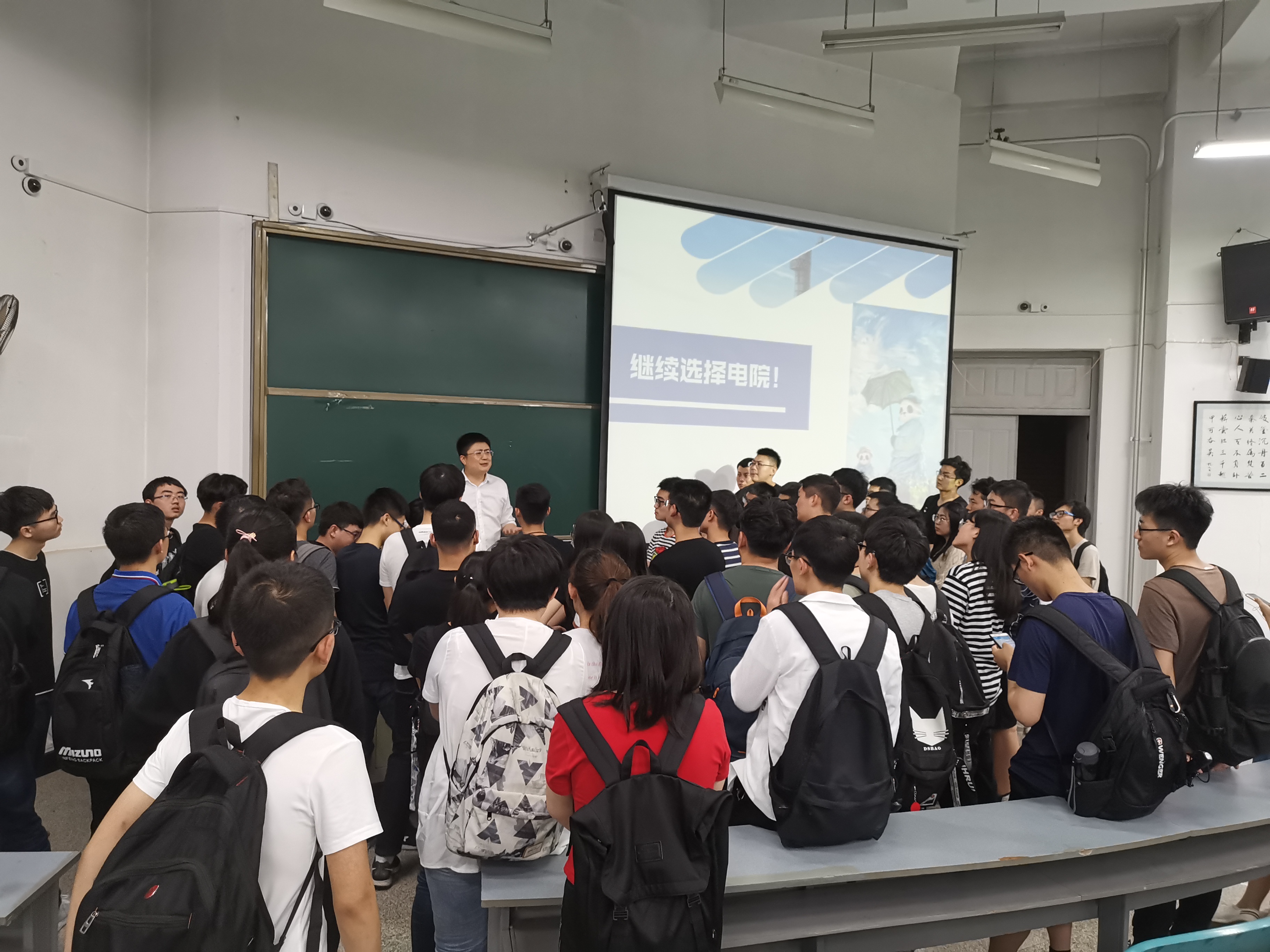 首先,丁金闪结合公司基本数据向同学们介绍了银河集团官网的学科特色和优势,并深入解读了一流团队、一流科研和一流培养的育人模式。他还从自身教学科研经验和海外经历出发,用一个个生动的例子为同学们剖析了目前就读研究生的专业就业前景和未来发展。从硕士研究生的不同国家的定义和标准到攻读博士学位的意义,从保送本校和外校的优缺点分析到就读沿海和内地高校的不同优势,从学科方向选择到选择合适的导师,从公司特色学科专业方向到人才培养的西电现象,从毕业生就业情况到服务国家科技发展,最终落实到不忘初心,科技报国,并以自己“裸奔”回国任职的例子告诉同学们, “把个人发展和祖国命运结合在一起”。他幽默风趣的讲话时不时让同学们会心大笑,为大家在炎炎夏日带来一丝清凉。第二部分,丁金闪教授向同学们重点介绍了2020年优研计划框架和报考基本政策,并为不同成绩段的同学建议了报考策略。最后,向同学们介绍了银河集团官网拟实施的本硕博贯通式拔尖人才国际化培养体系框架,为即将报考银河集团官网的同学的未来发展做了认真规划。两个小时的宣讲会结束后,热情的同学们围在讲台附近继续提问,与公司招办老师们进行进一步交流。