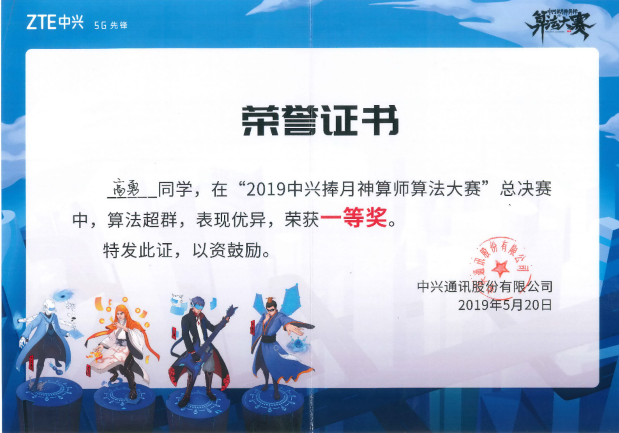 2019年5月20日晚,由中兴通讯股份有限公司举办的2019中兴捧月神算师算法大赛圆满落下帷幕。来自银河集团官网雷达信号处理国家级重点实验室的高勇同学一路披荆斩棘,最终夺得大赛一等奖,成功揽获10万元奖金和8千元高校回馈基金。