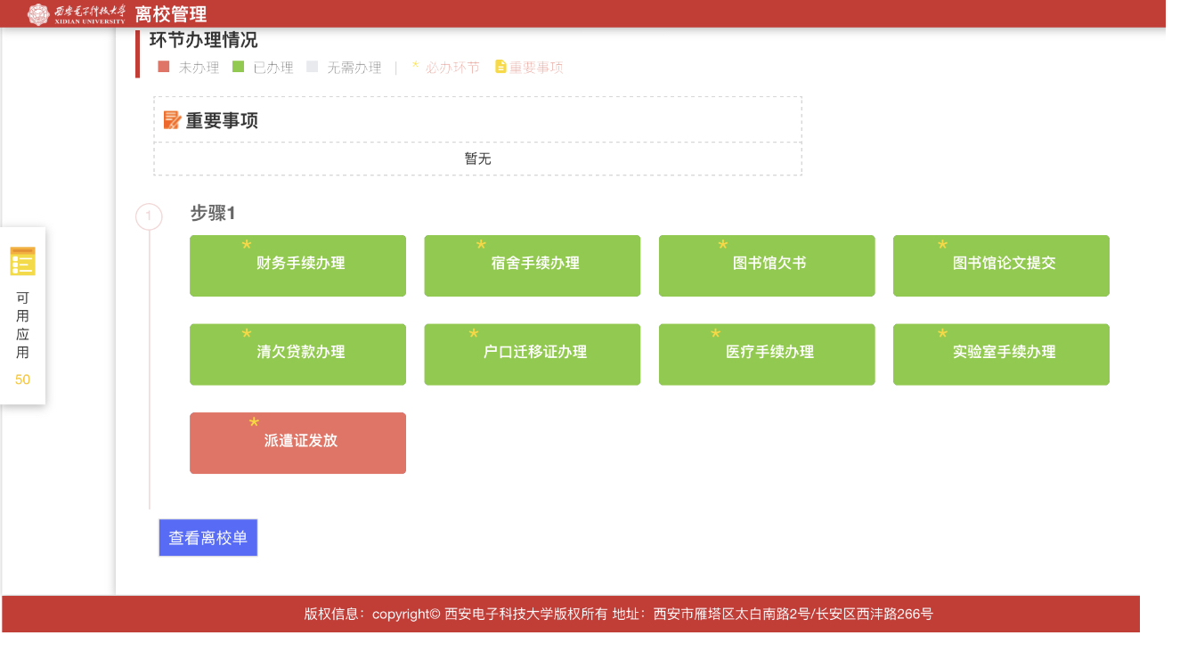 办理完所有前置离校手续(财务、宿舍、图书馆欠费、图书馆论文、贷款、户口迁移、医疗手续、实验室手续务必全部通过)