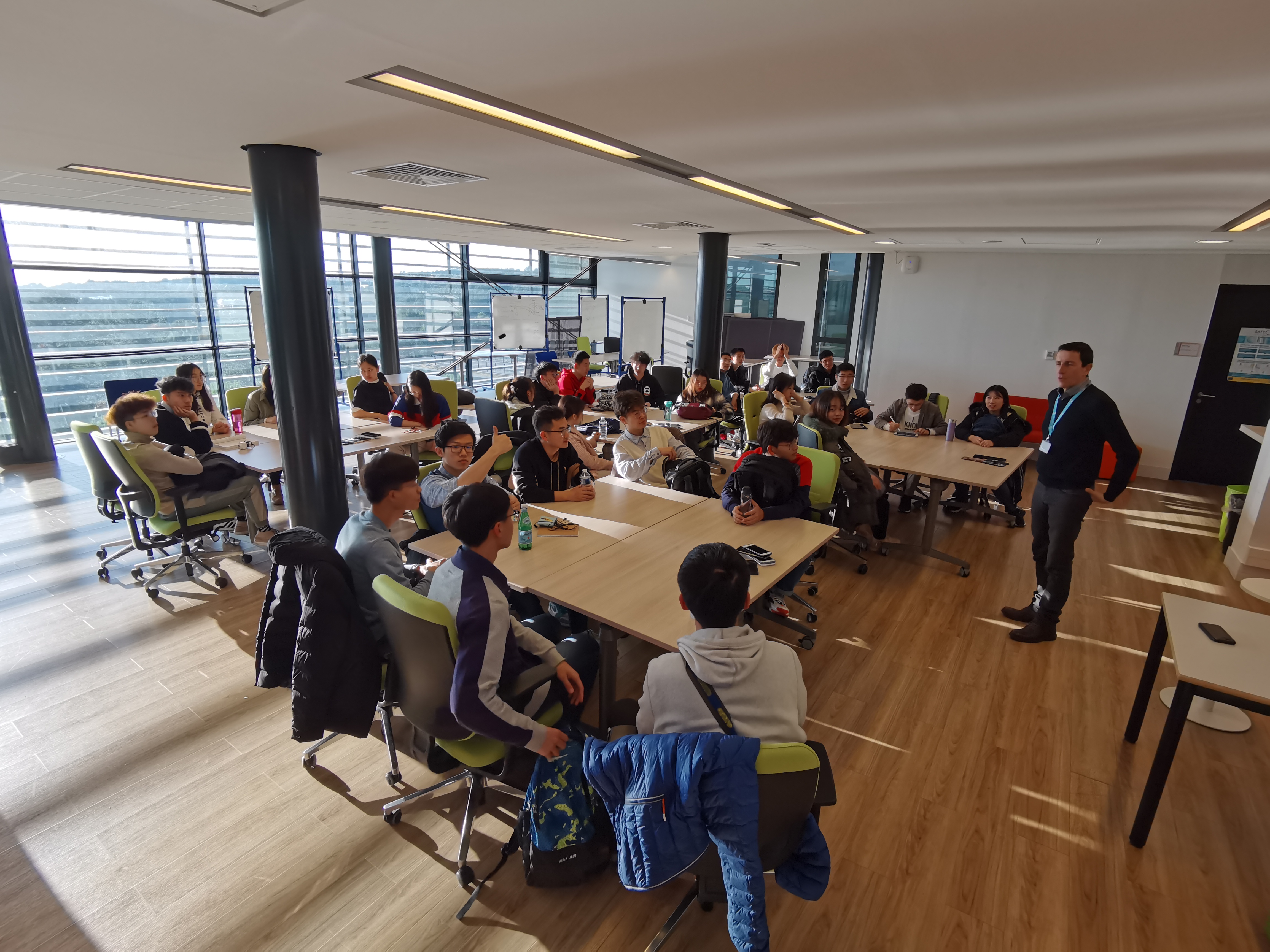近年来华为手机的拍照性能名列世界前列,这就有尼斯研发中心的功劳,这里的研发中心提供了华为系列手机摄像头图像信号处理单元的设计研发工作。华为尼斯研究中心的副所长赵敏俊亲自接待了访学团的同学,详细介绍了尼斯研发中心的主要研究内容、对应的技术方向以及所需求人才的专业方向。同时敞开心扉介绍了他的个人从业经历,鼓励同学发掘自己的学习和研究兴趣,充分利用自己语言优势,成就自己的职业生涯,同时建议大家学习深造后回到祖国发展或是在中国公司发展,与祖国共同成长。