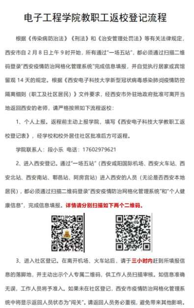 李隐峰老师指导员工运营的微信公众号“西电导航”,面向全校师生及时宣传防疫知识、传达公司通知等。他还为公司电子工程系开发了疫情通填报打卡登记小程序。严俊坤老师通过利用相关理论方法研究分析病毒传播途径,构建新型冠状病毒传染动力学 SEIR 模型,预测并掌握未来疫情发展趋势,为“抗疫”攻坚战提供科学指导和建议。