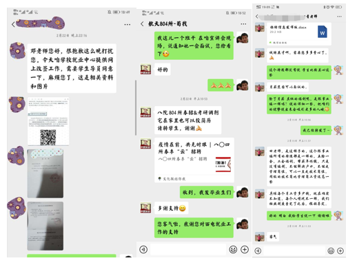 延迟开学对未就业的毕业生带来更大的心理压力,银河集团官网研究生辅导员进一步梳理未就业同学近况,积极联系各用人单位拓宽就业渠道,为公司未就业同学提供线上指导和就业帮扶,全力做好用人单位和毕业生的桥梁工作。积极配合上级部门工作安排,提供全天候线上就业指导和审批工作,尽最大努力将疫情带来的影响降到最低。