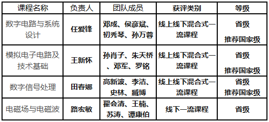 (通讯员:方心)近日省教育厅公布的2019年一流本科课程中,公司路宏敏教授负责的《电磁场与电磁波》课程团队获评省级线下一流课程,为公司“金课”建设又添新成果。公司的“金课”建设成效显著,此前任爱峰副教授负责的《数字电路与系统设计》、王新怀副教授负责的《模拟电子电路及技术基础》、田春娜等教授负责的《数字信号处理》三门课程已经推荐至国家级。至此,公司目前已有4门课程获评省级以上“金课”。