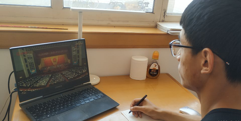 受疫情影响无法返校的2018级党支部全体党员,通过网络直播观看学习了两会开幕式。开幕式上,李克强总理代表国务院做政府工作报告,内容涵盖去年和今年以来工作回顾、今年重要目标,以及今年部分重点工作。