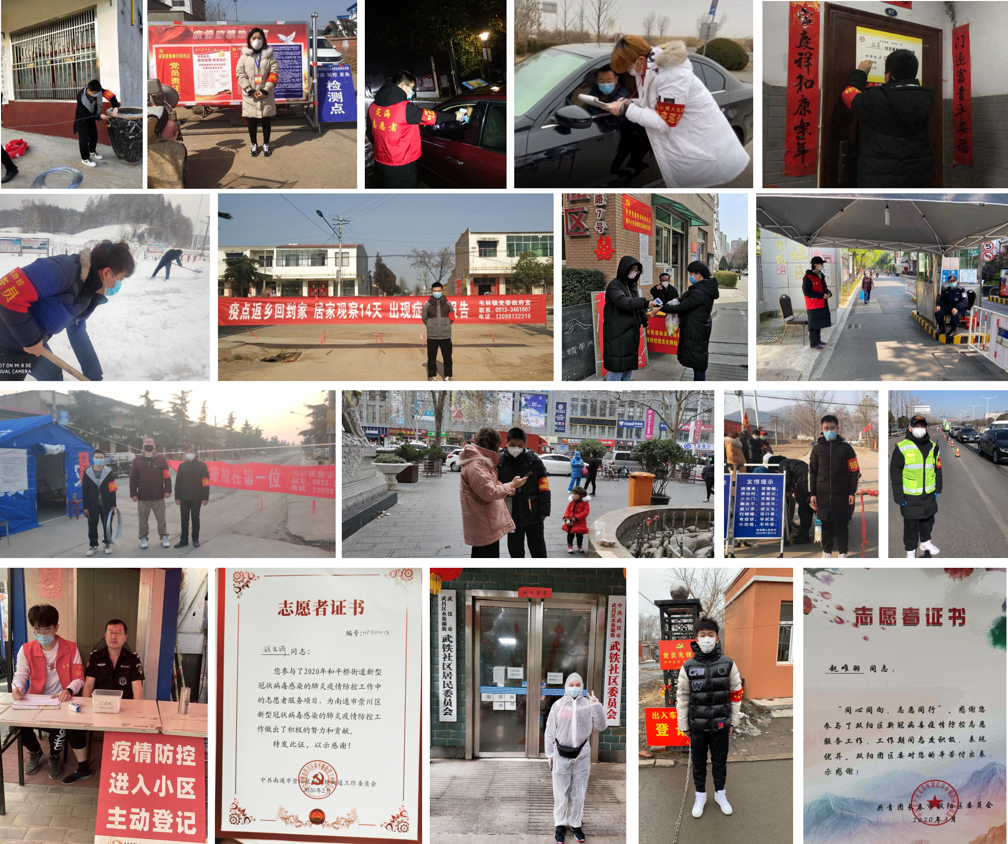 19级员工方瑜在甘肃定西社区门口为进出人员进行体温检测;18级员工李昌壕负责给通过村口的车辆进行消毒以及给进出人员测量体温等防护工作;17级王伟在郑州亚星社区开展志愿者服务活动,主要开展出入人员登记、政策讲解、标识张贴等工作;16级刘业成同学与社区工作人员24小时轮流值班,负责控制人员流动和协助买药送药工作……近百名银河集团官网学子在不同地区、在不同岗位,认真忠诚履职尽责,敢于担当作为,争做打赢疫情防控战的先锋表率。