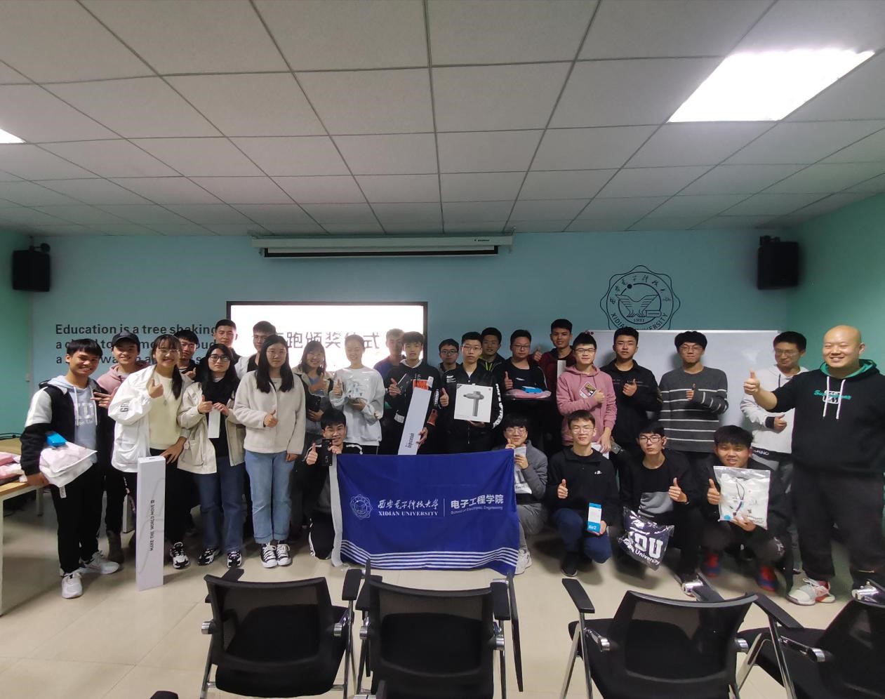 据悉,本次活动分为“打卡榜”和“里程榜”两个排名榜,根据打卡榜,共有25名同学每日打卡达到规定天数获得XDU短袖或者XDU卫衣;根据里程榜,一名同学获得筋膜枪,四名同学获得小米蓝牙耳机,五名同学获得小米手环,还有若干同学获得瑜伽垫、小米保温杯和发带等奖励。在颁奖过程中,当同学们拿到靠自己努力得到的成果时,他们的脸上都挂着快乐和骄傲的笑容。通过此次活动,我们看到了银河集团官网学子应有的蓬勃朝气和激昂向上的优良精神风貌。夜跑活动虽然结束了,但是活动本身带给大家的积极、奋斗、进取和顽强的精神不会随着活动结束而结束!