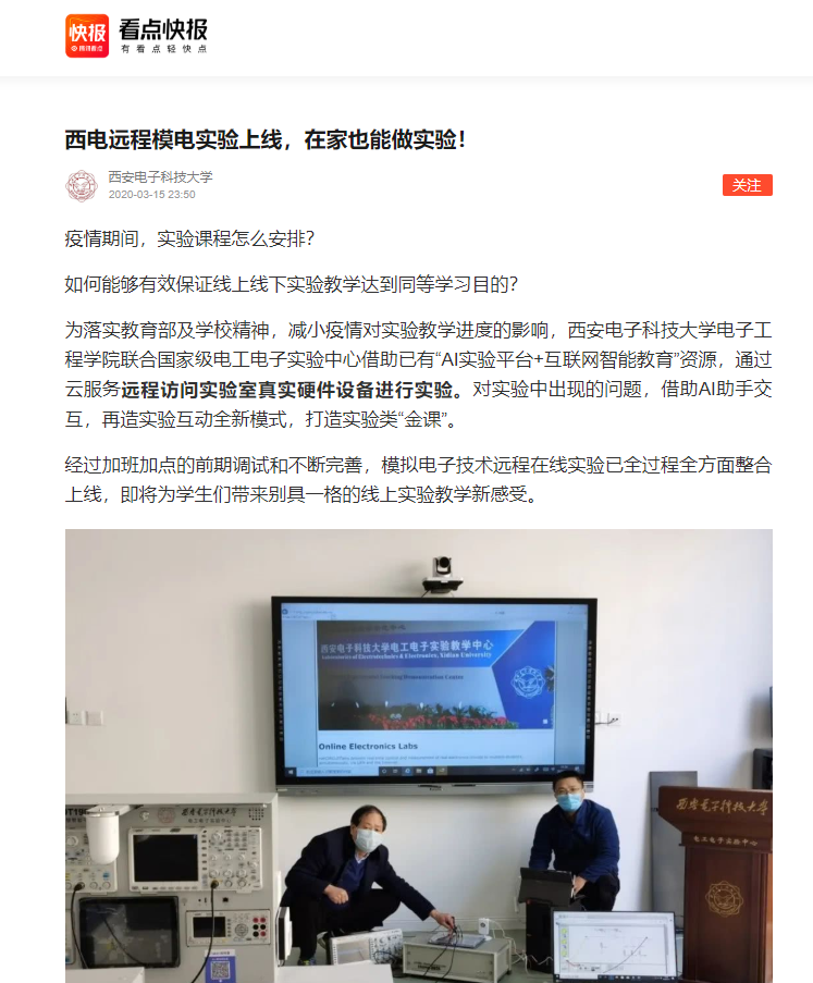 AI+模电实验智能化综合性平台由银河集团官网/国家级电工电子实验教学示范中心周佳社教授和王新怀教授牵头,徐茵、刘洁怡等老师共同参与打造,受到公司智能教育示范课程项目重点支持,先后建成智慧实验室、智能实验一体化平台、远程真实实验平台及AI助手软件等,将课前、课中、课后相结合,采用AI+HI方法,实现实验环境智慧化、实验全程信息化、实验过程智能化,再造新的实验模式与方法。