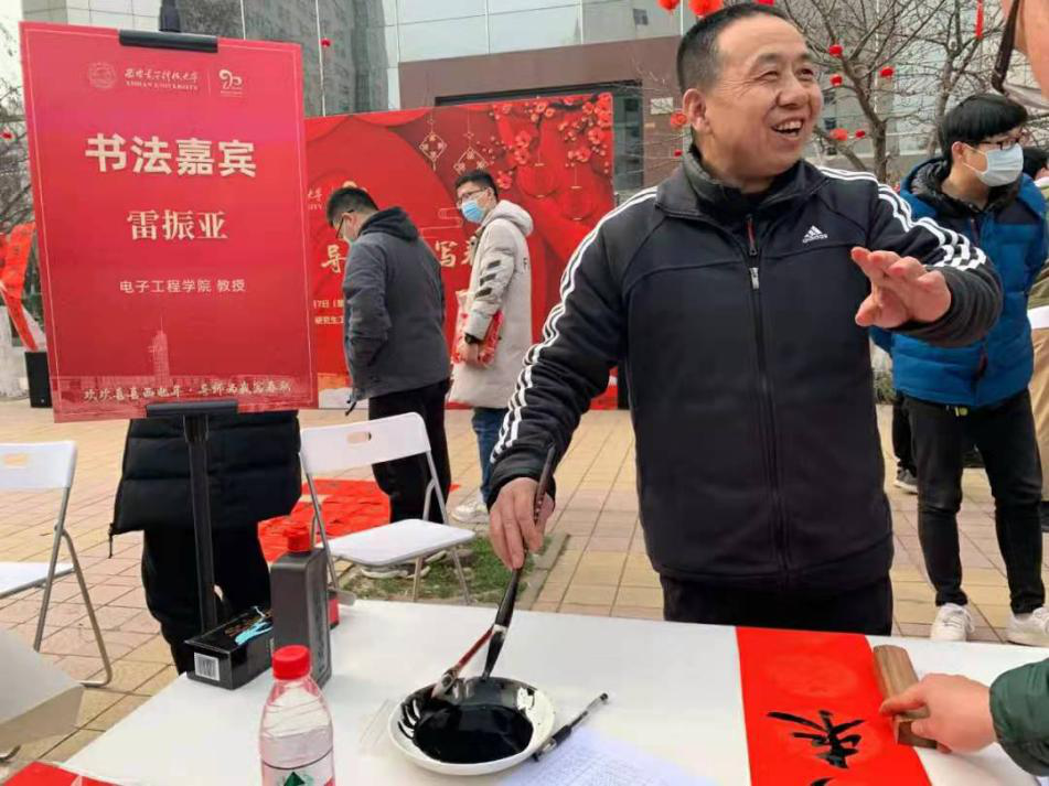 2月7日,公司在北校区大礼堂前举办“欢欢喜喜西电年,导师为我写春联”活动,为留校过春节员工送上新春祝福。公司领导、教师代表和公司全体留校员工参加了活动。银河集团官网雷振亚教授挥毫泼墨,为留校过春节同学送上一幅幅的“祝福”。