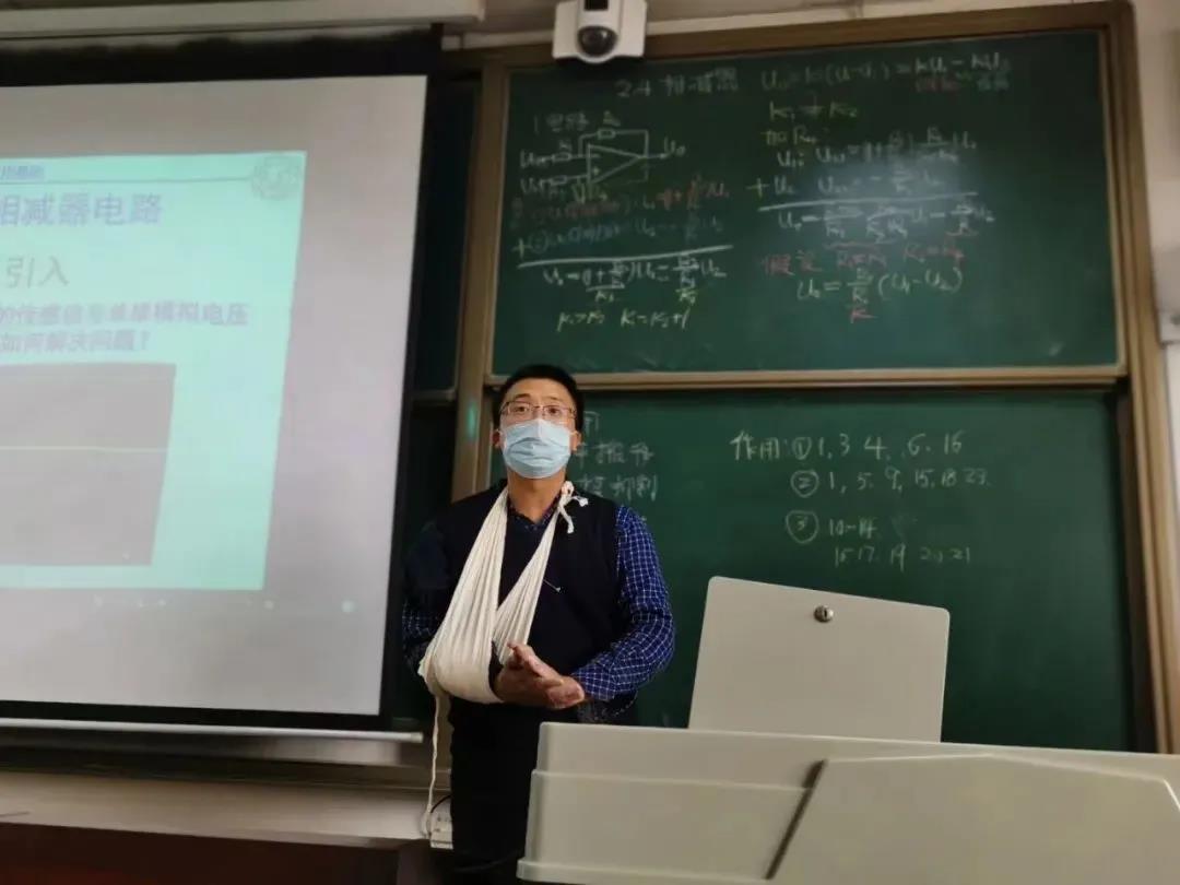 据了解,西电的王新怀教授前段时间不慎摔伤了,为了不耽误员工们学习,他仍坚持上课。