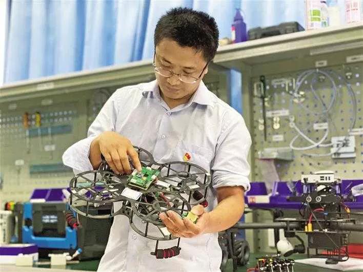 瓶盖大小的毫米波雷达、会跳舞的皮影、灵活自如的水下蛇形机器人、自动作业的液体3D打印机、“黑飞克星”无人机侦测与反制系统……这间看似普通的教室,摆满了形形色色各种电子仪器设备。员工时而认真观察,时而冥思苦想,时而埋头计算,似乎沉浸在一个欢乐的魔法世界里。