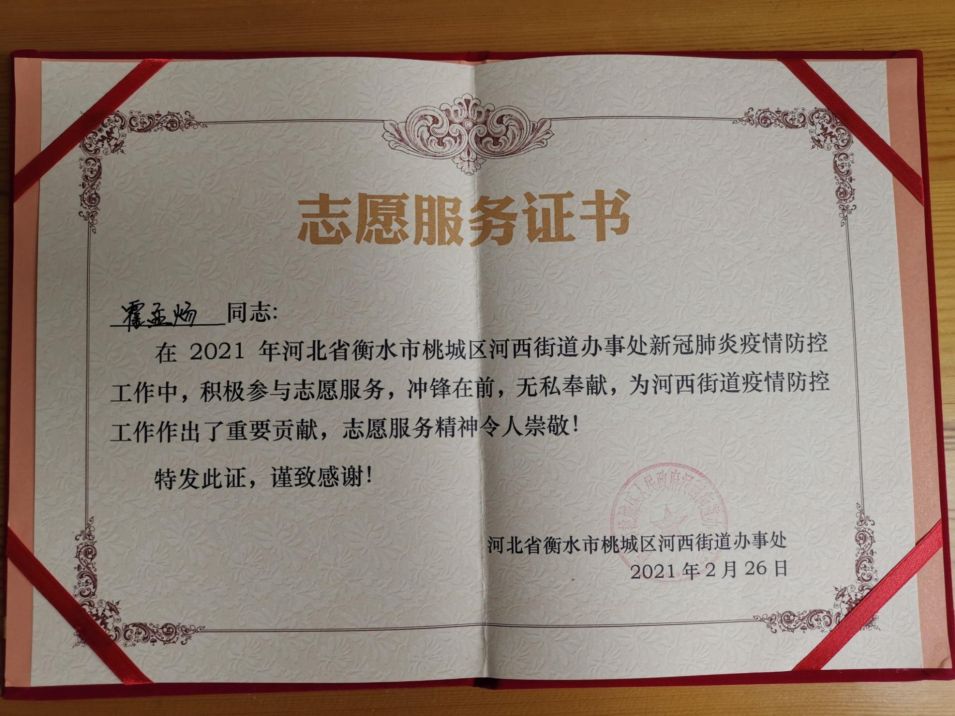 于是春节前,霍孟炀便主动请缨成为衡水市桃城区河西街道的一名志愿者,在疫情防控检查点值班,为进出社区的居民进行登记和体温检测,排查辖区居民生活面临的实际困难。霍孟炀说,10多天的志愿服务工作中,他感受到了社区居民积极配合工作的热情,原以为‘疏远’的邻里关系,其实并非冷漠,面对疫情,大家的团结一心让他很受感动。