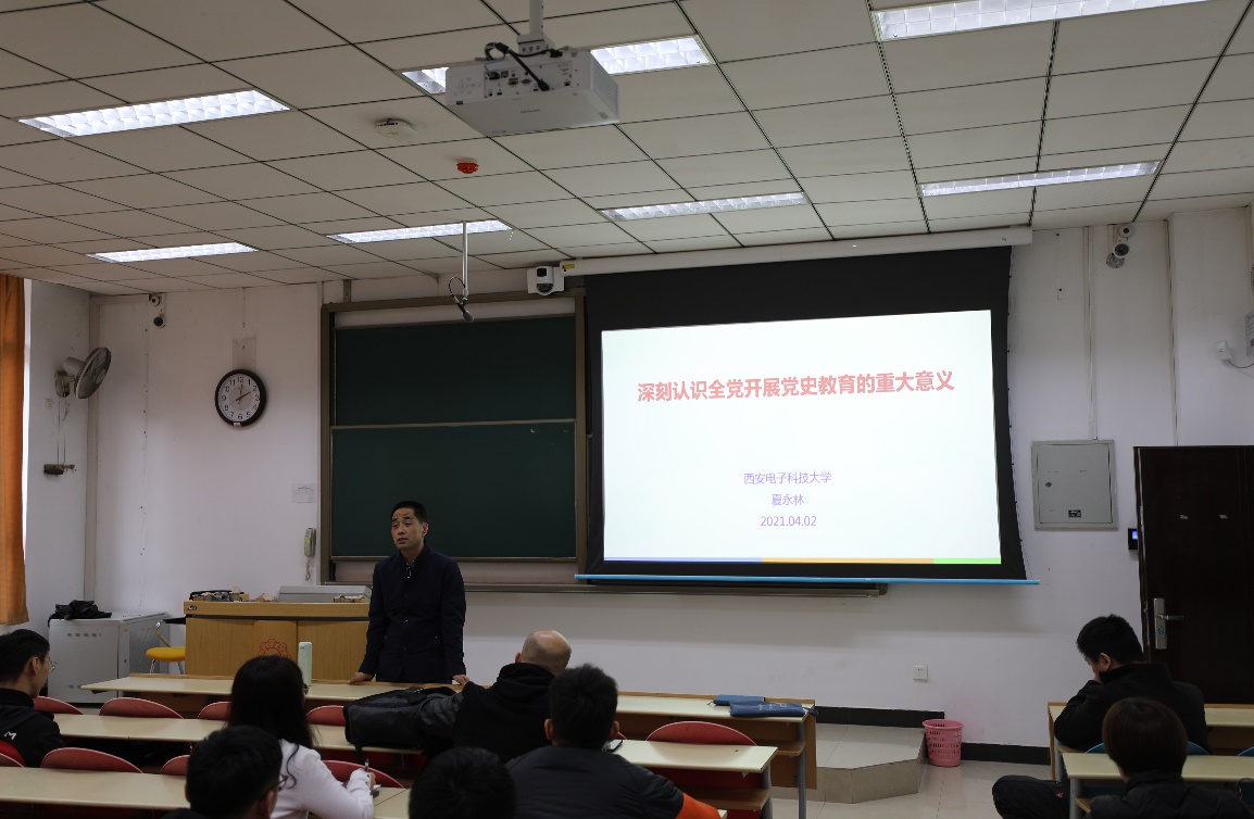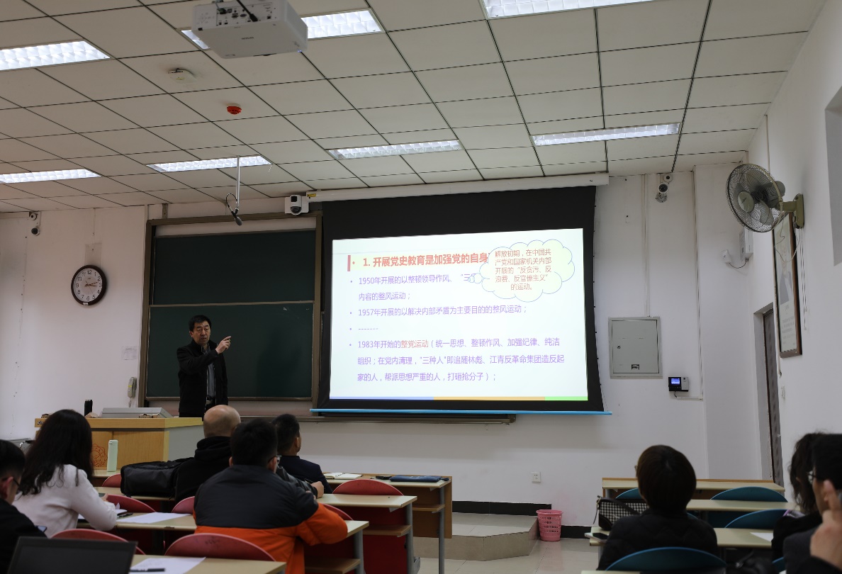 夏永林教授以《深刻认识全党开展党史教育的重大意义》为题,深度阐释了扎实开展党史学习教育的必要性,重点强调了党史学习教育应当把握的原则和注意的问题,并分享了自己的思考。报告会上,夏永林教授用“史上最牛创业团队”作引,带领师生回顾了中国共产党的发展历程,梳理了党内思想教育探索的百年历程与启示,论述了党史学习教育的重大意义。同时,夏永林教授结合习近平总书记在党史学习教育动员大会上的讲话,为师生解读了党史学习教育的重点和工作要求。最后,夏永林教授希望广大师生通过党史学习教育进一步增强对党的理论的认同,树立正确的历史观,用实际行动传承好红色基因,赓续共产党人精神血脉。