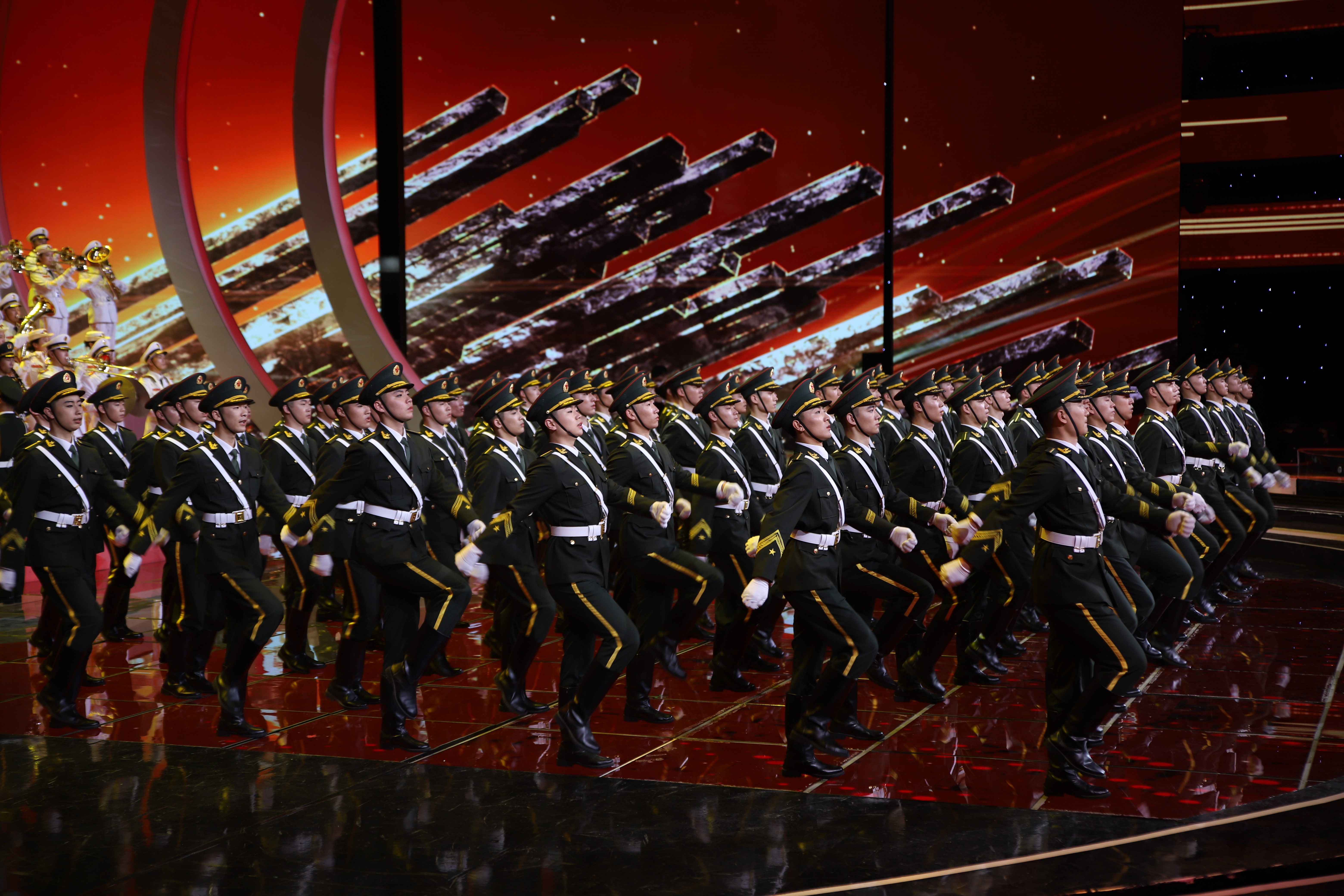 员工领队、退役老员工士兵黄拓说:刚刚接到这个任务时内心非常紧张,这既是荣誉又是挑战。为了不负祖国,不负公司,不负青春,圆满完成此次任务,全体同学们不怕苦不怕累,一次次加班加点的训练,只为了在舞台上的完美呈现。在紧张有序的排练中,我又一次感受到了军人的使命感和责任感。我们身着军装就要展现出解放军战士们寸土不让的决心和保家卫国的斗志,向伟大的祖国敬礼!