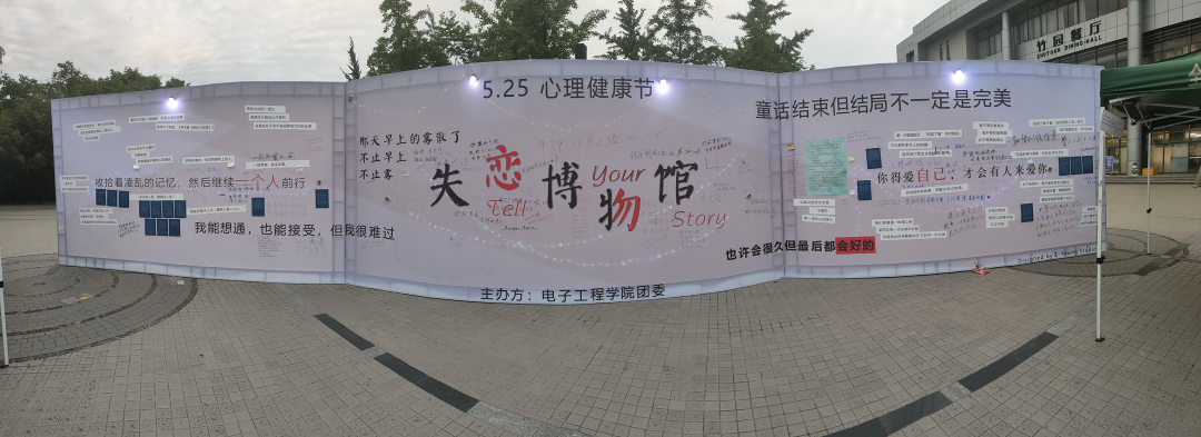 5月25日,外场活动“失恋博物馆”在竹园餐厅东门口成功举办。“失恋博物馆”活动旨在通过展示同学们失恋故事、心情、感悟,倡导同学们树立正确的爱情观,早日走出失恋,用平和的心态处理爱情的得失,更加关爱自身,更好地爱自己。展出活动持续到夜晚,在主题墙温柔的灯光下,许多同学都留下了自己的故事。