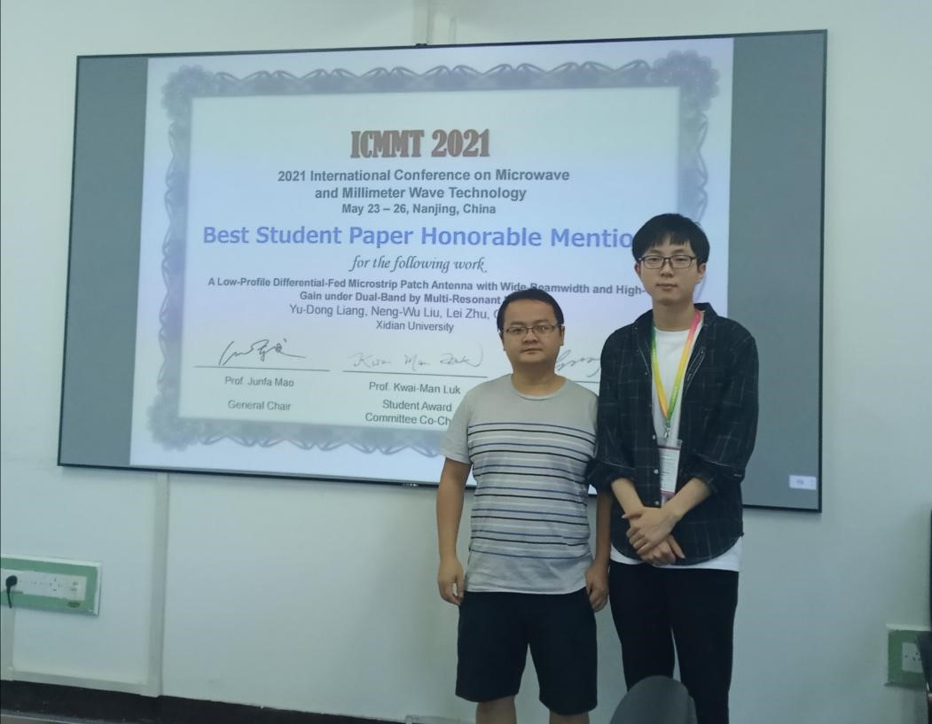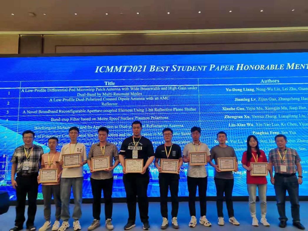 银河集团官网学子在2021年国际微波毫米波技术会议(ICMMT)上荣获最佳员工论文荣誉奖