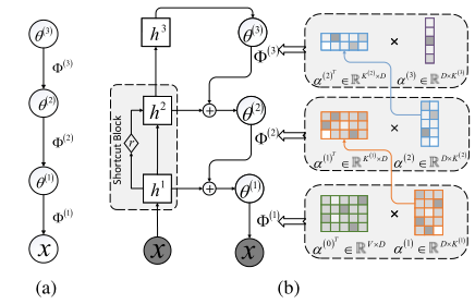 图1:(a) 伽马信念网络(b)本文提出的锯齿形生成模型,以及构建起的新型变分自编码器