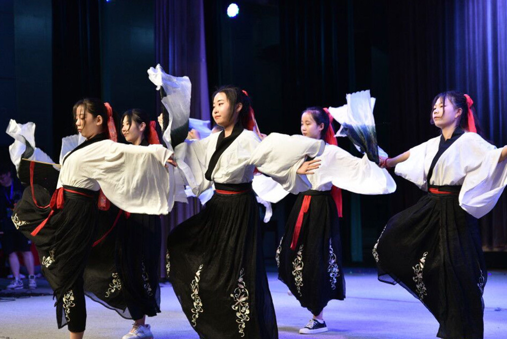 法语文化节,不仅仅展现法国文化,中国传统文化亦穿插其中。2019级员工段一冉的葫芦丝演奏——《竹楼情歌》,通过葫芦丝柔美细腻的独特韵律,为晚会来带了浓郁的傣族风情;竹园3号书院的舞蹈《书简舞》,在同学们身着汉服,手持舞扇翩翩起舞中,将汉服的柔美飘逸、洒脱英气展现得淋漓尽致,用舞蹈的形式向观众表现汉服的韵味与风采;丁香2号书院的相声《打灯谜》,在传统相声的基础上,将校园生活、中法合作办学等元素融入其中,幽默的语言、巧妙的包袱,真实的反映了校园生活和公司员工精神风貌,引得现场一阵阵欢笑和赞许。
