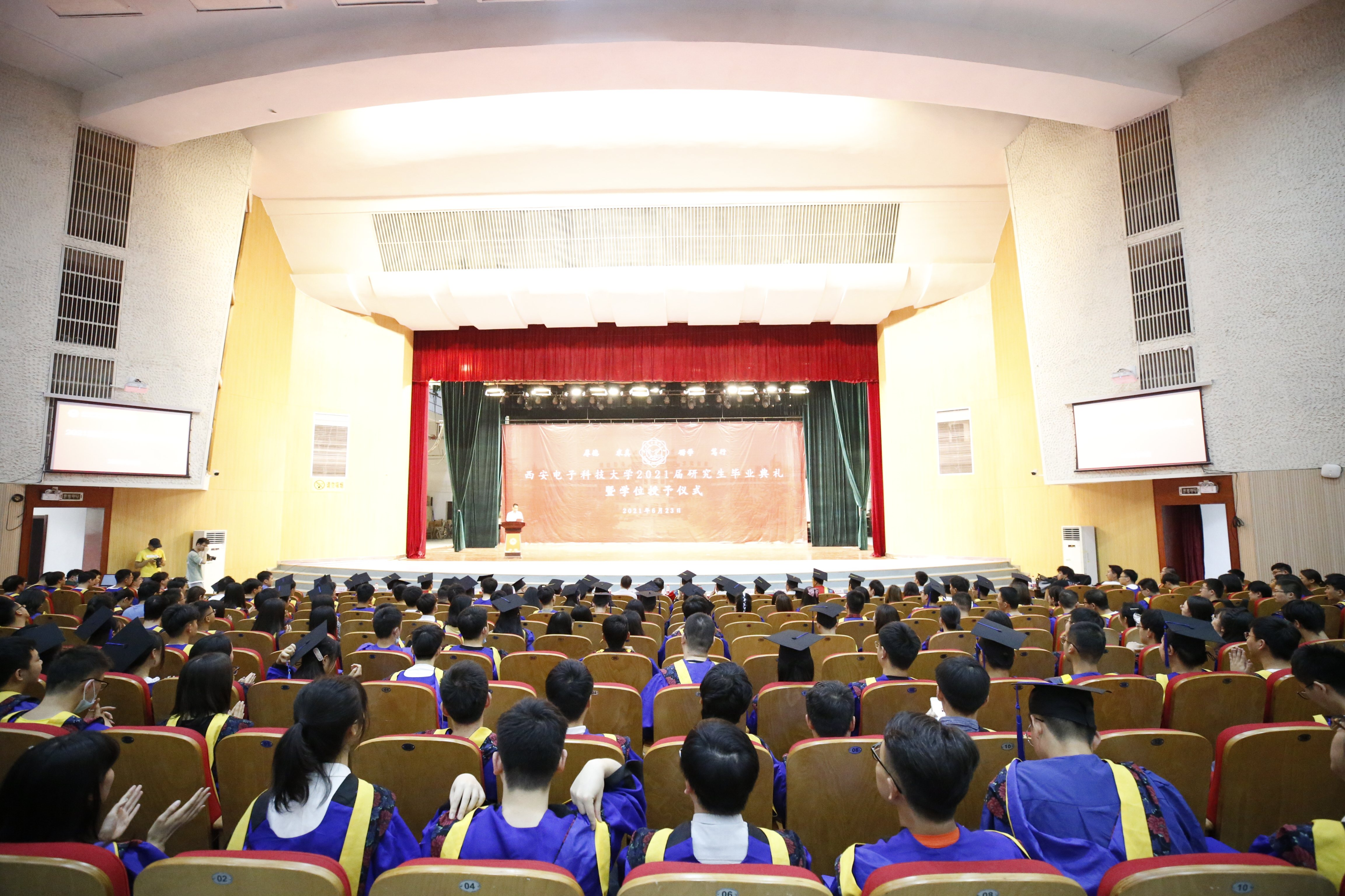 典礼在雄壮的国歌中开始。随后,崔铁军院士向毕业生寄语殷切希望,他勉励同学们要坚守爱国情怀,回报家国,服务社会;要勇担时代使命,续写好“西电现象”,做合格的社会主义建设者和接班人;要丰富人生智慧,以包容的心态不断吸收新知识,强大自己。