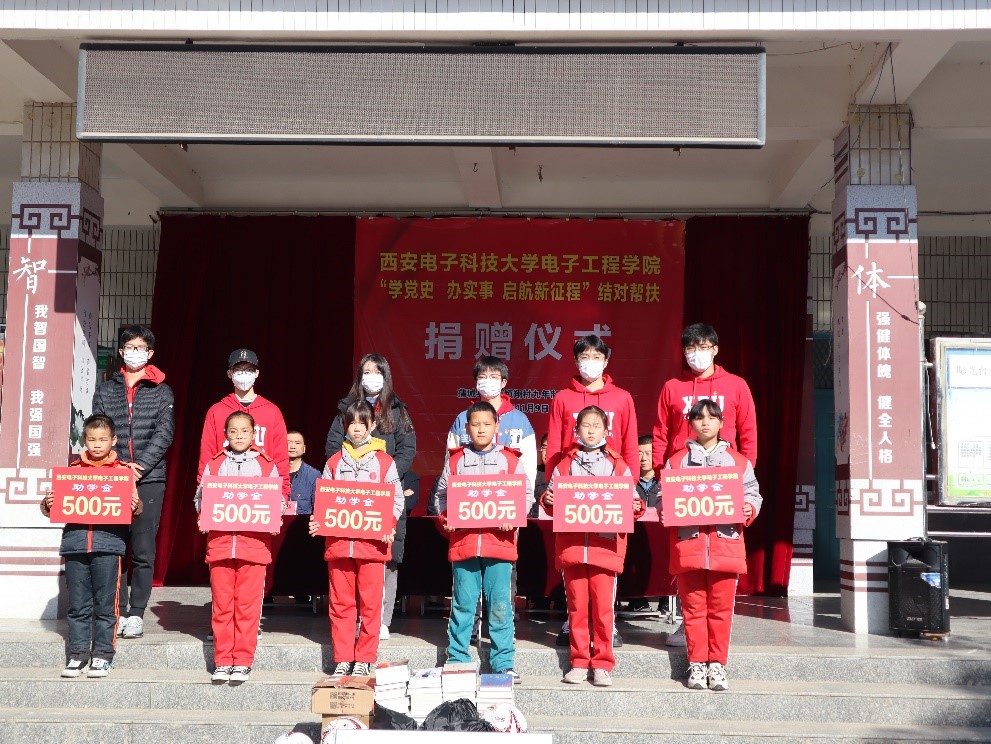 (通讯员 韩旭)11月9日,银河集团官网2019级8名同学赴蒲城县尧山镇翔村九年制公司,参加了银河集团官网“学党史,办实事,启航新征程”结对帮扶捐赠仪式,8名本科生自愿将获得的1.5万元奖学金捐赠给翔村公司家庭贫困、品学兼优的员工。
