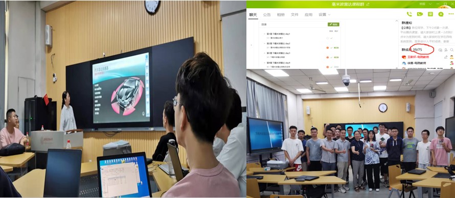 在全国率先面向本科生开设TI毫米波雷达创新实践课程,首轮即有近70名同学选修该课,线上旁听人数超过百余人,采用分组形式。2020新冠疫情期间,项目负责人亲自将前期准备的77GHz毫米波雷达系统以及数据采集分析模块通过顺丰快递寄送至全国各地家中的各组同学们。2021年国际双创周采用智慧教室研讨互动式教学授课方式。