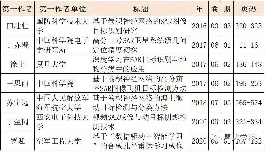 雷达学报本次入选论文