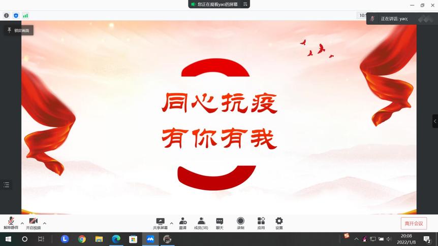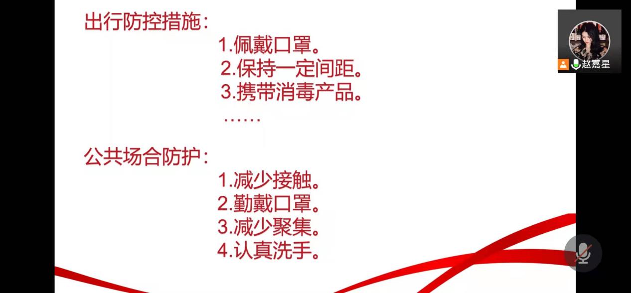 赵思垚同学首先介绍了本轮疫情的重要程度,鼓励同学们要有“红军过草地一样的精神去面对困难、面对疫情”,之后简要介绍了西安此次疫情中市委市政府包括每一位市民做出的努力,并且从一名抗疫志愿者的角度,号召同学们团结一致,一起为抗击疫情贡献自己的青春力量。