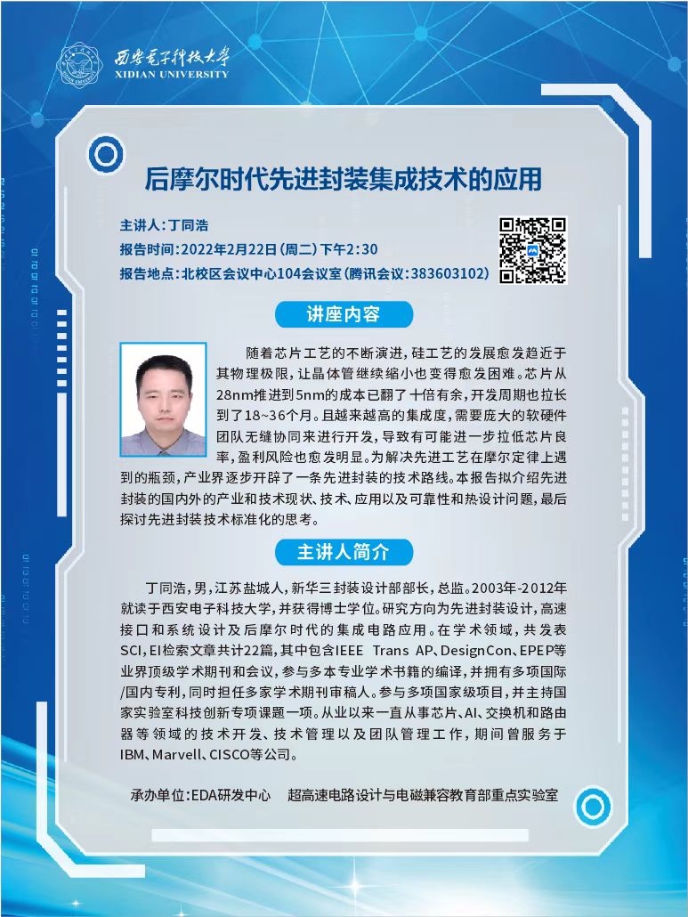 讲座:后摩尔时代先进封装集成技术的应用2022-02-20 19:15:29浏览次数: 责任编辑:邓鉴 上一篇文章:【同心战疫 严防不懈】雷达同心学术论坛(七)——网络化雷达协同探测技术下一篇文章:讲座:华为全场景AI框架MindSpore核心技术和架构理念