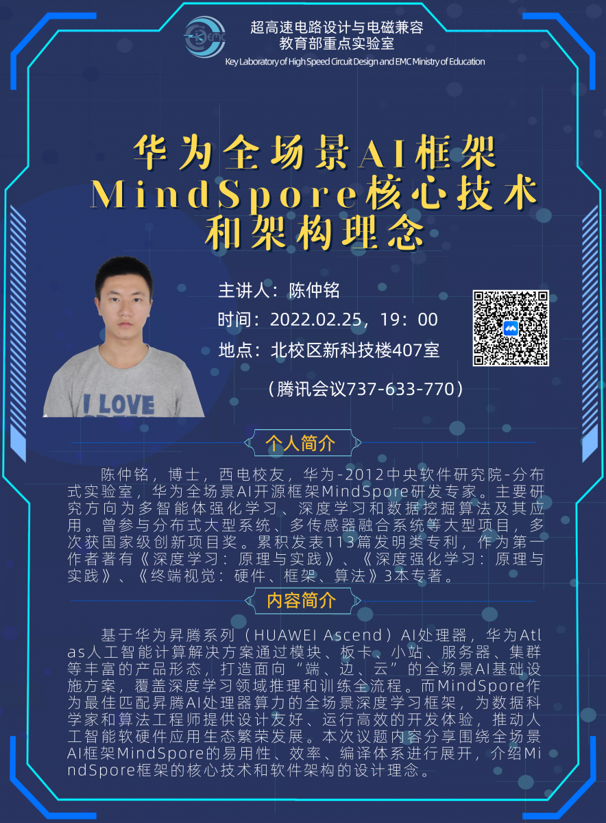 讲座:华为全场景AI框架MindSpore核心技术和架构理念2022-02-24 11:45:15浏览次数: 责任编辑:邓鉴 上一篇文章:讲座:后摩尔时代先进封装集成技术的应用下一篇文章:讲座:生物智能启发的无人系统决策与规划
