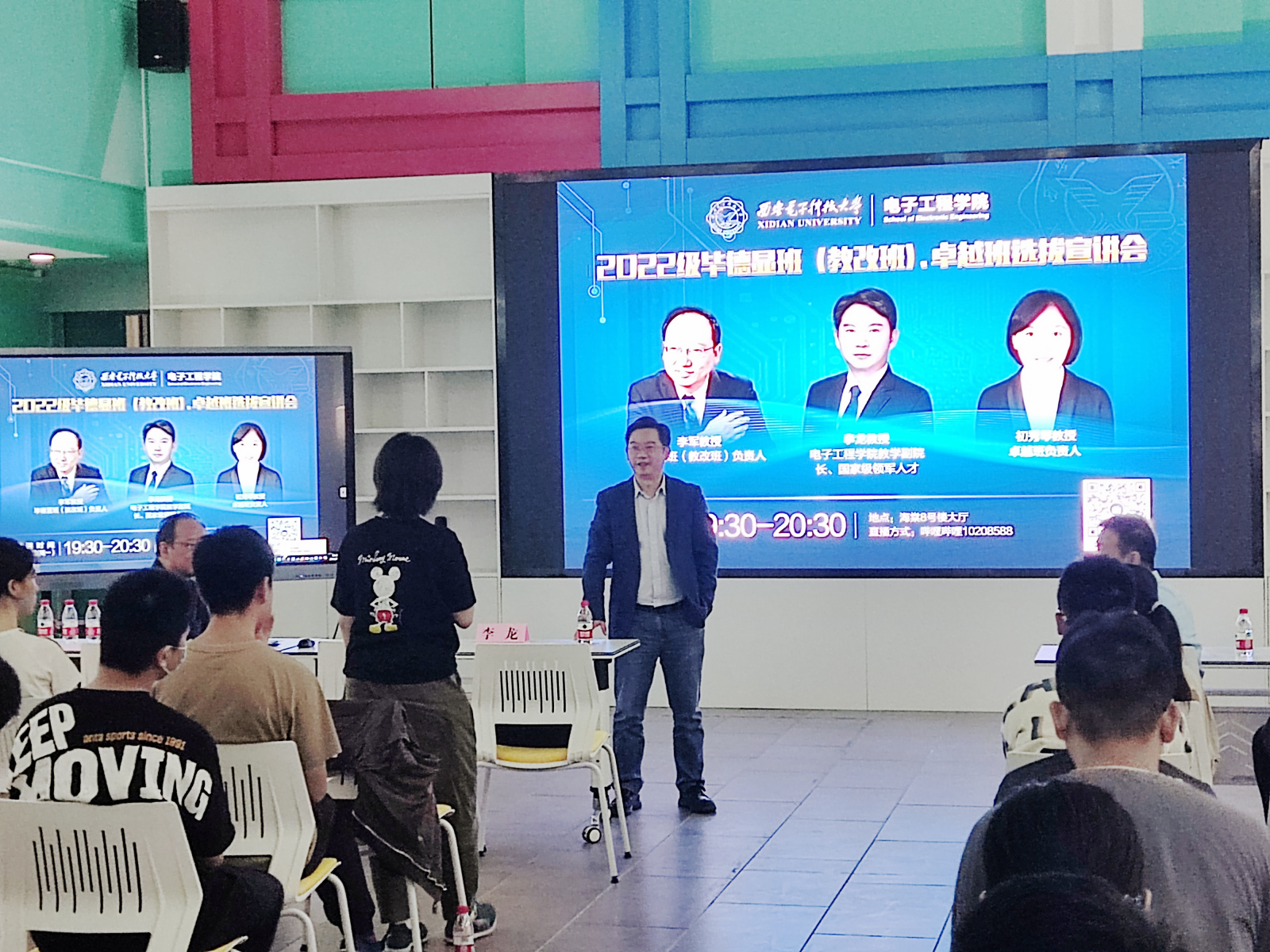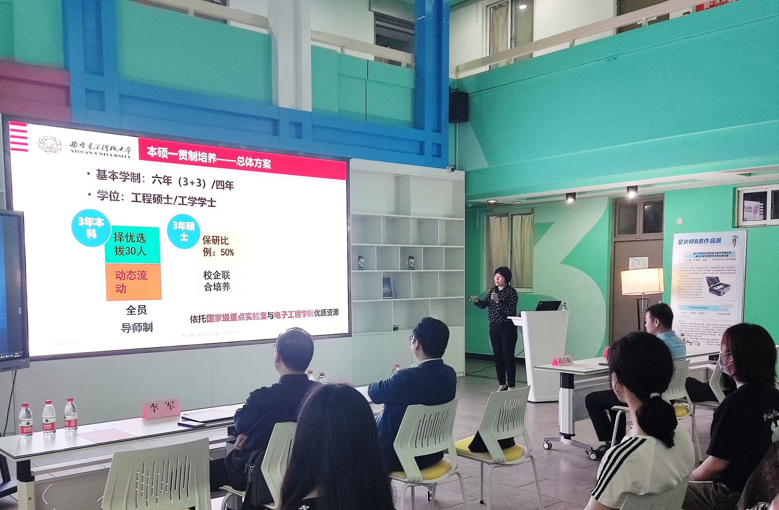 (通讯员 李雨烟 张玲 毕力格 陈幸 供图 梁翰林)为助力培养创新拔尖人才,发挥教学改革引领示范作用,遴选优秀员工进入试点班,帮助新生规划老员工活,9月26日晚,银河集团官网联合海棠3号书院,在海棠八号楼大厅举办了毕德显班(教改班)、卓越班宣讲会。银河集团官网教学副经理李龙教授、毕德显班负责人李军教授、卓越班负责人初秀琴教授与2022级新生展开面对面交流,鼓励员工积极参与试点班选拔,在大学遇见更优秀的自己。活动由海棠3号书院副书记赵岩松主持,线上线下同步进行,现场吸引近百名新生参加。