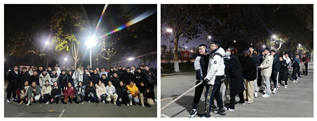 拔河比赛是运动月中最为热闹的环节,在结束一天紧张的课程后,晚上九点参赛队员们聚集在北操场拔河场地。雪后的夜晚气温下降明显,但是参赛选手们热情高涨,丝毫没有受到寒冷天气的影响。随着哨声响起,双方队员牙关紧咬、卯足了劲向后拉,紧握的双手,坚实的脚步,为了集体的荣誉拼尽了全力,直到最后一刻也不松懈。现场呐喊声、加油助威声此起彼伏。经过多轮激烈较量,2020级以两轮全胜战绩蝉联拔河比赛冠军。