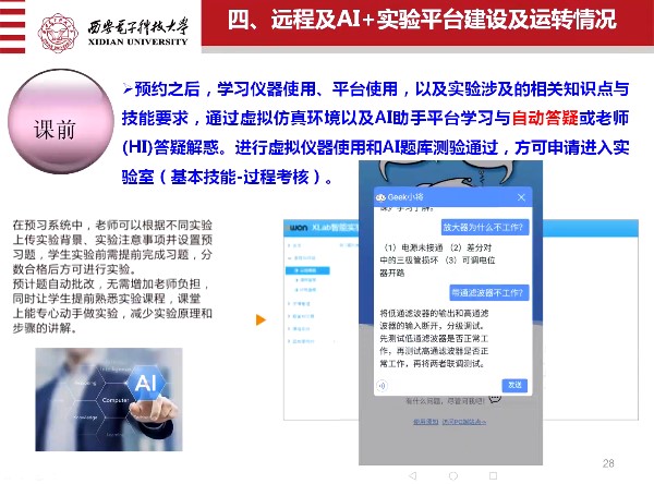 周佳社教授报告的内容包括实验室建设与改革的意义与目的、建设理念与实践教学体系、传统实验现状及实验课程运转情况、远程及AI+实验平台建设及运转情况、实验室安全及管理等内容。