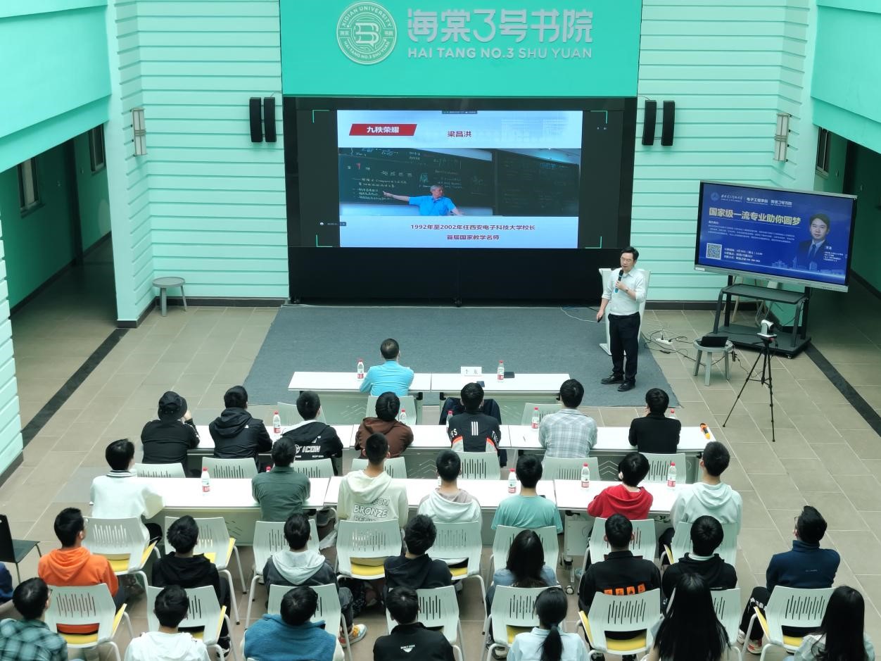 接下来,银河集团官网副经理李龙教授以学科导论课为依托,就电子信息学科、专业发展进行介绍,引导新生了解学科发展、大类专业特点,帮助大家合理选择专业,制定本科学业发展规划。以“国家级一流专业助你圆梦”为主题,李龙教授详细解读了公司公司历史、学科分布、团队力量、科研平台、人才培养目标、毕业生去向等,重点介绍了银河集团官网相互支撑的四个一流本科专业,简要介绍了电磁波、信号及雷达等抽象知识的基本原理,语言生动有趣,讲解通俗易懂。让员工们的西电印象更加深刻,更加领会毛主席的题词“你们是科学的千里眼和顺风耳”。毕德显、保铮、梁昌洪、孙肖子、毛乃宏、张荣桥、崔铁军等杰出人才的事迹,不仅展现了西电在电子信息领域为国家做出的卓越贡献,更让同学们感受到了所肩负的传承荣光、报效祖国的重任。