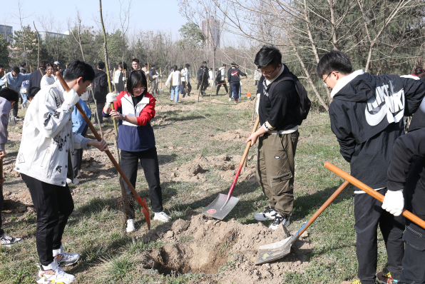 远望谷体育馆东侧,在后勤保障部园艺老师的统筹安排下,同学们三五人一组,有序分工,热情饱满。大家一起挥动铁锹、培植厚土、扶正新苗,让一棵棵树苗在灌溉之下萌发新生。同学们纷纷表示这次活动十分有意义,增强了自我植绿、爱绿、护绿的意识,在身体得到锻炼的同时,提高了自身的专业素养和动手能力。