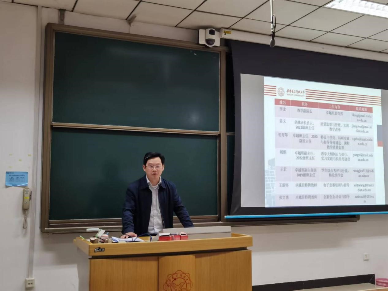 围绕卓越班培养方案和人才培养目标,杨熙向同学们详细介绍了卓越班的人才培养体系,紧紧围绕国家科技战略和区域发展需要,以产业人才需求为导向,通过优化课程体系、落实本硕一贯制培养方案、实施综合能力提升计划、建立质量持续改进机制,形成具有西电特色的卓越工程师培养机制。