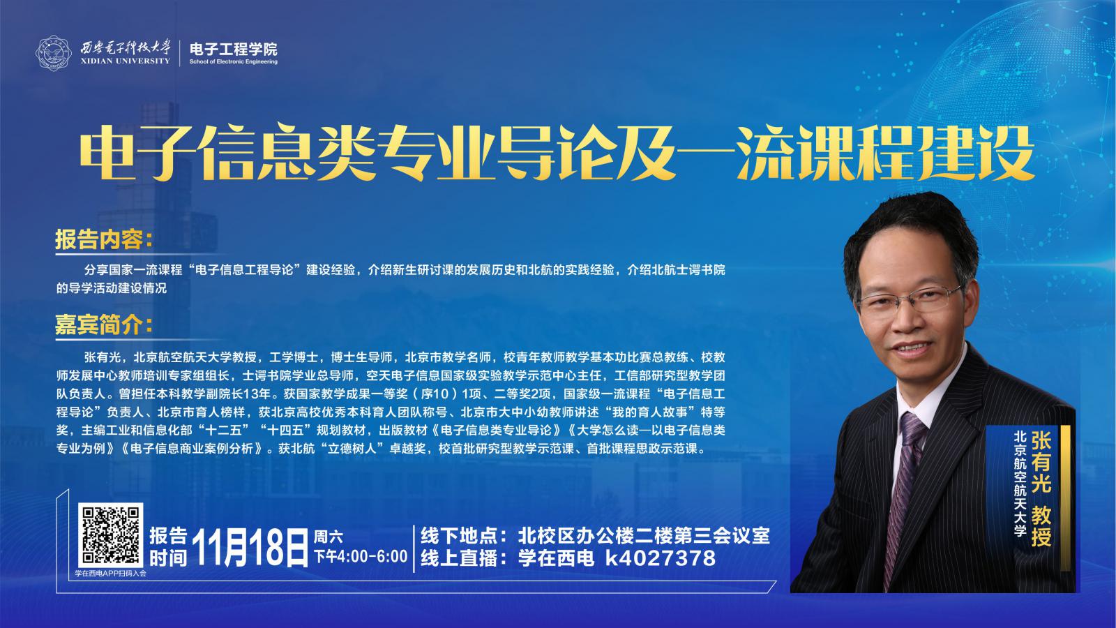 专题报告:电子信息类专业导论及一流课程建设2023-11-16 16:05:54浏览次数: 上一篇文章:讲座报告:OneOS技术特色与应用实例下一篇文章:专题报告:新工科背景下“射频通信电路”课程的融合式架构重组建设与实践