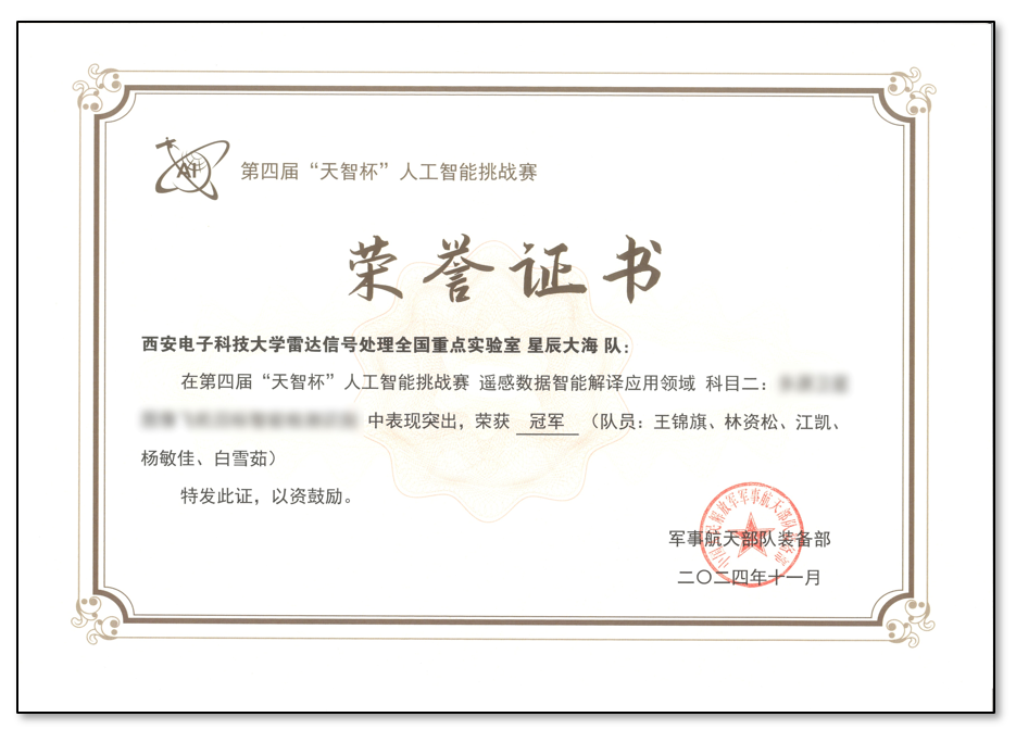 (通讯员 王锦旗 杨敏佳)11月12日,第四届“天智杯”人工智能挑战赛在北京圆满落幕,经过线上初赛、线下半决赛、现场决赛等多轮激烈角逐,公司白雪茹教授带领的“星辰大海”团队在遥感应用领域表现突出,获得该领域科目二冠军和科目六亚军。