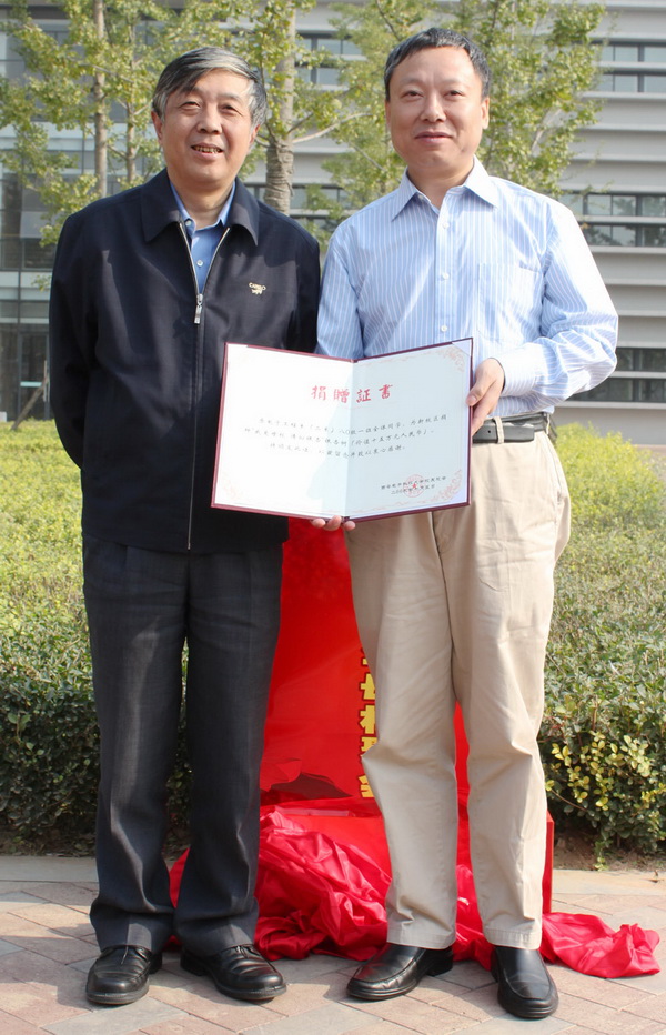 10月5日上午,2-801班全体返校员工在南校区206报告厅出席欢迎会,副董事长陈平教授致欢迎词,员工总会办公室就公司的建设与发展现状做了详细介绍,2-801班员工、中国电子科技集团第20研究所张修社副所长代表2-801班全体员工发言。随后,在校前区举行了隆重的捐赠银杏树揭牌仪式。藉本次聚会之机,2-801班员工为母校捐种价值15万元人民币的银杏树,祝福母校取得更大发展。公司在所捐赠树木区域永久性地矗立了题为“我爱母校、情似银杏”的捐赠纪念石刻,副董事长陈平教授和2-801班员工代表、深圳远望谷集团公司徐玉锁董事长共同揭牌,陈平副董事长代表公司颁发了捐赠证书并亲自为员工佩戴了捐赠纪念章,陪同员工们参观了新校区。同时在新校区“竹园员工林”举行2-8611班捐种雪松树仪式,由校总会办公室主任颁发捐赠证书并致感谢词。