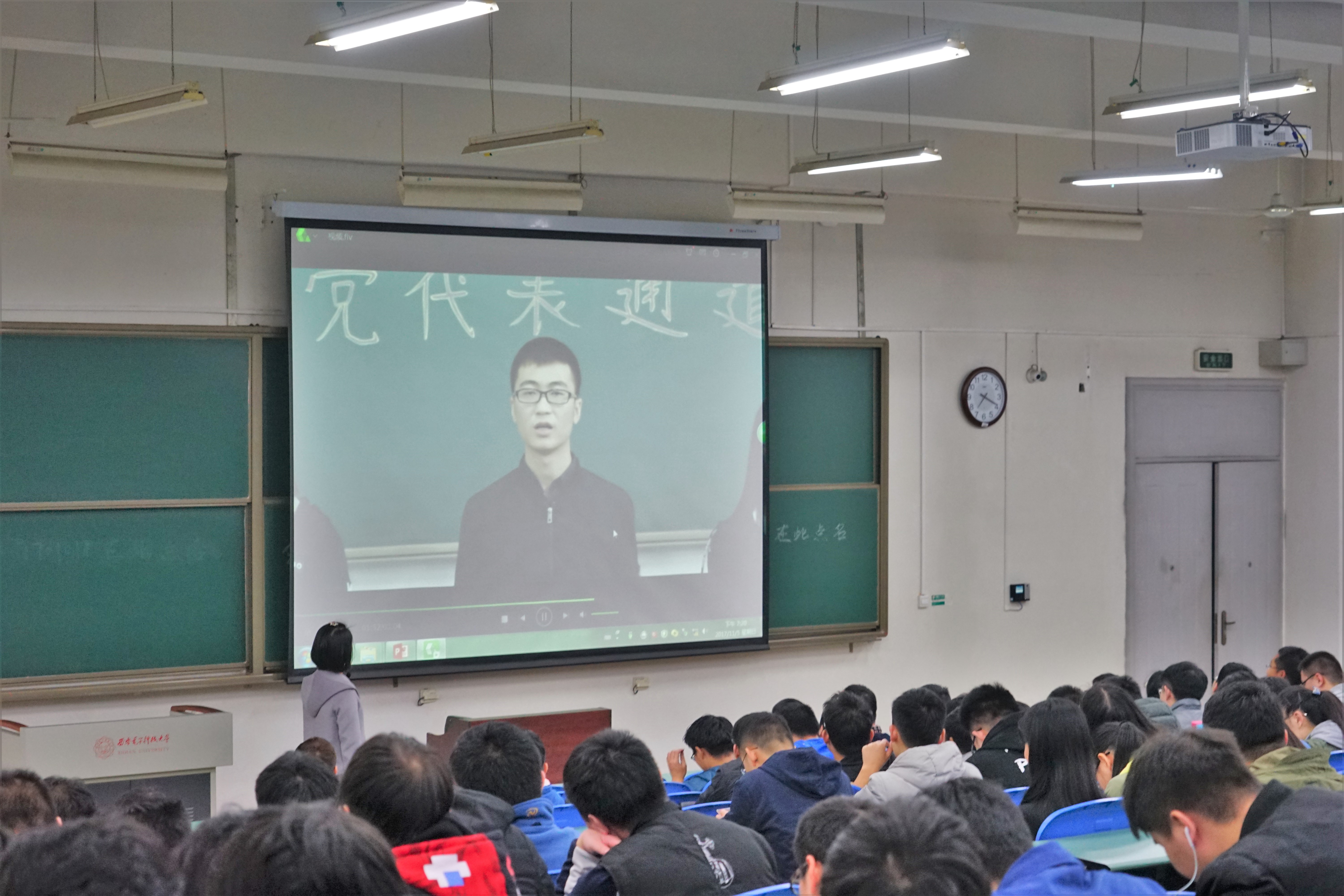 王朱丹从十九大概况谈起,带领同学们一起学习了十九大主题、议程、意义,并结合自身的体会,讲述了自己感受到的近五年来我国十大方面的历史性成就。讲解过程中,王朱丹频频与同学们互动交流,先后与同学们交流了“两个一百年奋斗目标”的具体含义、“新时代”的深刻内涵、“全面建设”与“全面建成”的差异之处等等。她鼓励同学们做有朝气有活力的新时代青年,志存高远,脚踏实地,把学习作为首要任务,树立“梦想从学习开始、事业靠本领成就”的观念,敢于吃苦,勤于实践,成就“奋斗的青春”。同学们还一起观看了由1402051班党员们制作的献礼十九大的微视频。