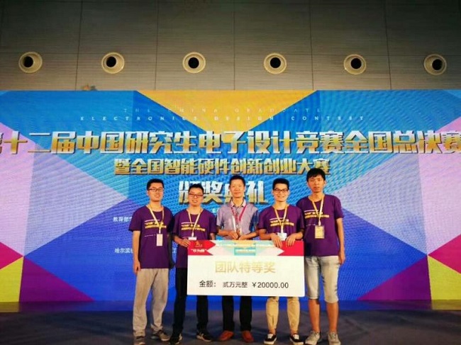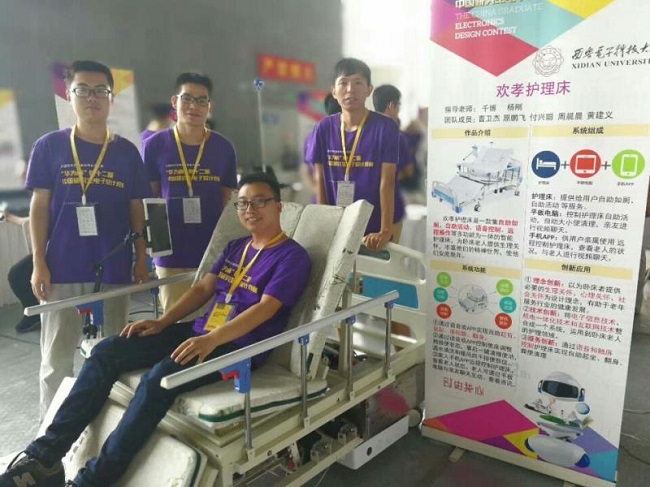2017年8月22日,在广东惠州举行的第十二届中国研究生电子设计竞赛全国总决赛TOP 10竞演的舞台上,银河集团官网“嵌牛护理”团队负责人向来自全国130所高校的参赛代表、专家评委及指导教师介绍了他们的创新作品——欢孝护理床。凭借作品良好的展示效果和应用价值,由千博、杨刚老师指导的“嵌牛护理”团队在众多参赛团队中脱颖而出,夺得全国特等奖。