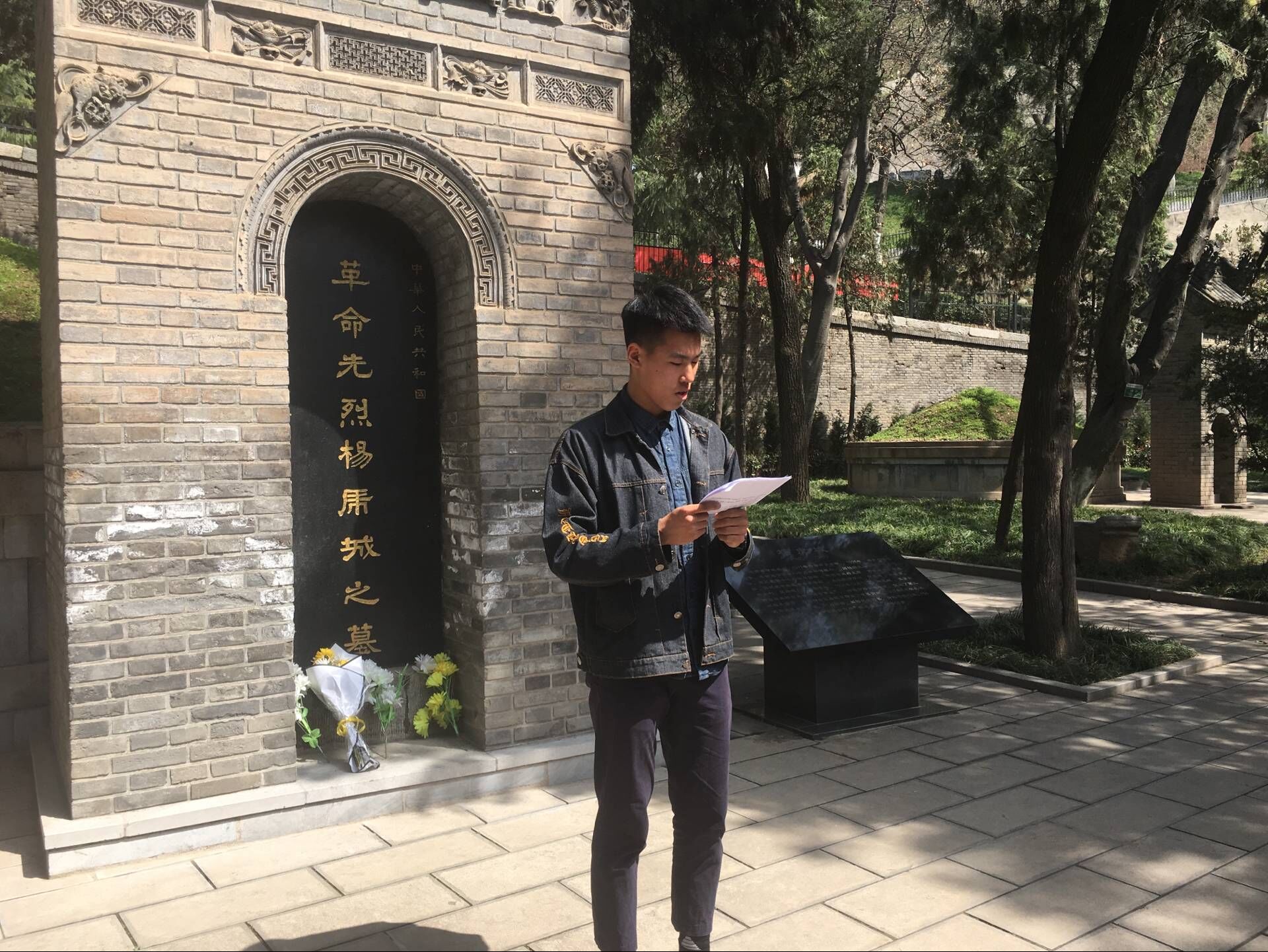 活动第一项为参观陵园园区。所有老师及员工代表拾级而上,参观烈士陵墓。一座座墓碑及墓碑上篆刻的文字,深刻的触动了同学们的内心,当同学们看到中国最年轻的烈士宋振中的墓碑时,大家的心情久久难以平复。
