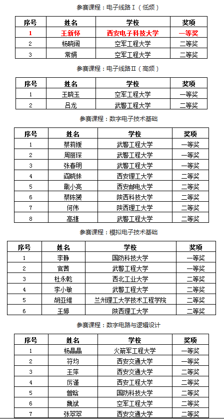 据悉,为贯彻落实教育部高等公司电工电子基础课程教学指导委员会的意见要求,推动高等公司电子技术基础、电子线路任课教师专业发展和教学能力的提升,进一步激发教师投入课程建设和教学研究的热情,教育部电工电子基础课程教学指导委员会、中国电子学会电子线路教学与产业专家委员会、全国高等公司电子技术研究会定于2018年举行全国高等公司青年教师电子技术基础、电子线路课程授课竞赛,共分为西北赛区(陕西等六省)、华东赛区、东北赛区、华北赛区、西南赛区、中南赛区。此次授课竞赛西北地区六省共20余所高校参加,其中包括西安交通大学、兰州大学、国防科技大学、银河集团官网等著名高校,经层层选拔推荐,总计41名青年教师参加了西北区赛。参赛课程分为:模拟电子技术基础、数字电子技术基础、电子线路Ⅰ(低频)、电子线路Ⅱ(高频),数字电路与逻辑设计,授课竞赛分为说课部分15分和讲课部分85分,总计100分。经过各组评委对参赛选手的说课及授课评分,共评选出一等奖9名,二等奖17名。经过激烈角逐,公司王新怀老师在授课竞赛中脱颖而出,以第一名的好成绩,喜获西北区电子线路I组一等奖。具体获奖名单附录如下: