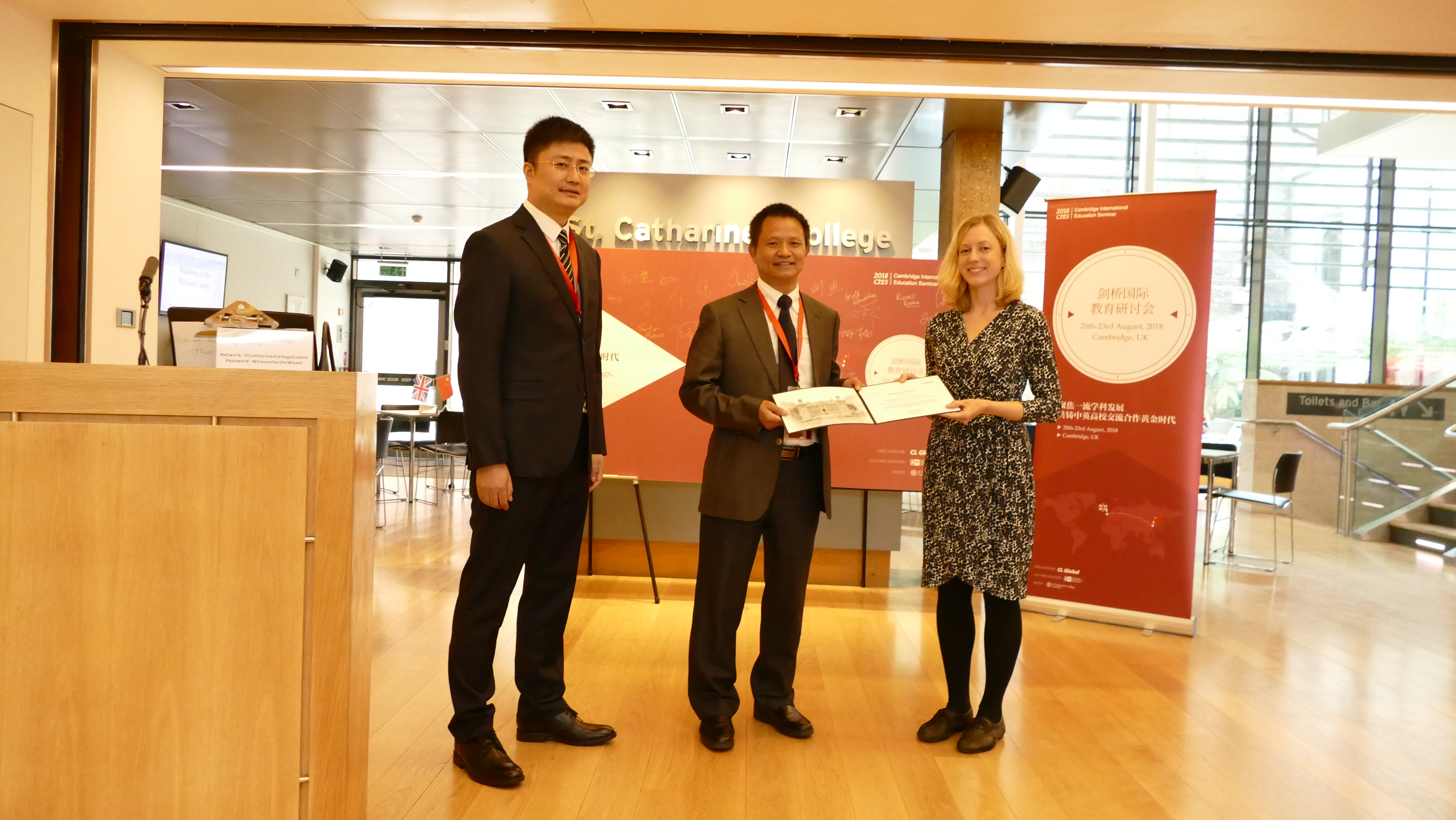 应剑桥大学邀请,银河集团官网经理廖桂生教授于2018年8月20日至25日赴英国剑桥大学参加了该校圣凯瑟琳公司举办的2018剑桥国际教育论坛,此次论坛主题为“聚焦一流学科发展,共铸中英高校交流合作黄金时代”。中国驻英大使馆、英国国际贸易部、剑桥大学、牛津大学、巴斯大学、诺丁汉大学、北京大学、上海交通大学、西北工业大学、北京理工大学、东北大学、吉林大学等中英双方近30家单位,共60余名代表出席了本次论坛,其中英方副董事长级代表9位。
