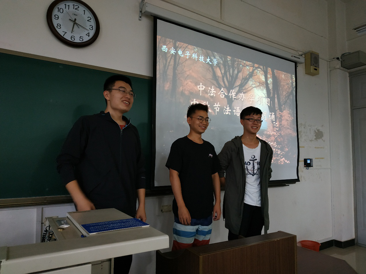 在几天的紧锣密鼓的商议和筹备后,活动于中秋节当天下午19:00正式开始。法语诗歌朗诵环节中,16级中法班的学长学姐们将一个个优雅的法语字母变成了一首首优美的法语诗歌,展示出了中法合作办学项目班积极向上的精神风貌。
