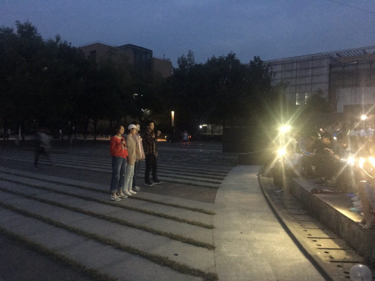 尽管条件简陋、场地有限、灯光效果也不是很好,但这丝毫不影响员工们的热情,活动从晚上19:00持续到21:00,师生共同欢庆,歌声、欢笑声充斥着整个广场。此外,九月份过生日的同学还收到了老师精心准备的小蛋糕和全班同学的祝福。