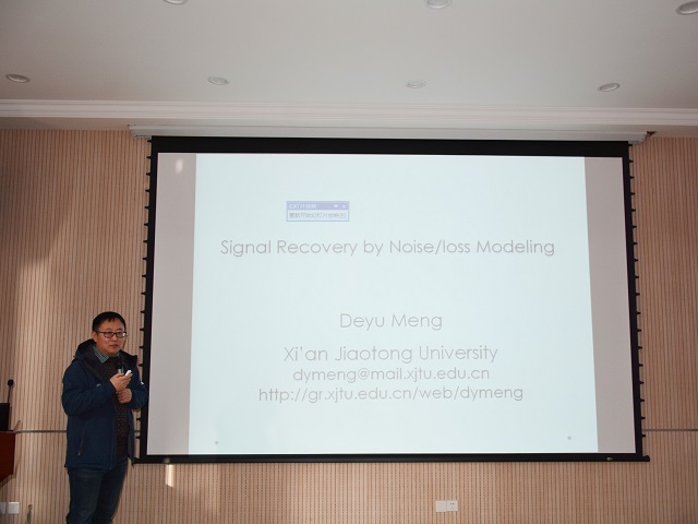 接着,孟德宇教授作了题为“误差建模原理”的报告。他的报告聚焦于如何针对包含复杂噪声的数据进行误差建模的鲁棒机器学习原理,并成功应用于在线视频处理、图像恢复等领域,已体现出个性化的应用优势,该原理亦有希望能够引导出更多有趣的机器学习相关应用与发现。