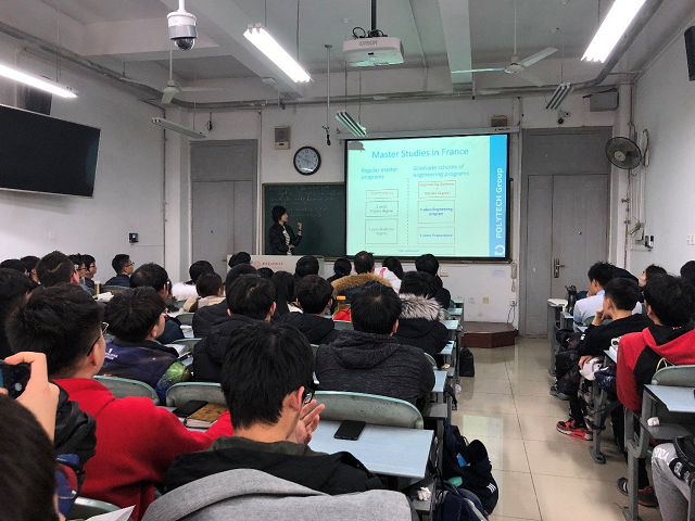 (通讯员 吴媛媛 殷乐雨)12月19日下午,在南校区C楼423教室,法国综合理工联盟欧盟奖学金负责人尹娜老师为中法合作办学项目2018级新生做了一场精彩生动的宣讲会,旨在让18级新生对法国的工程师教育有更进一步的了解,为员工们日后的学习增强信心,做好规划。